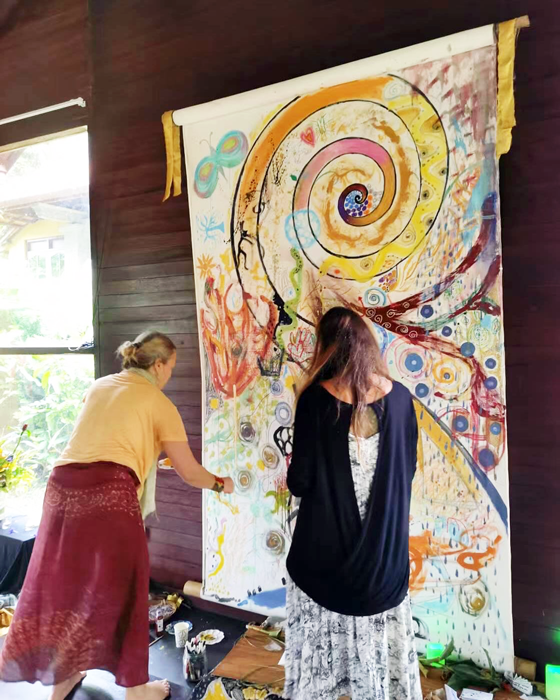 Intuitive Painting is a process of self-discovery through opening up to your intuition. My role as a facilitator is to witness, hold the space, and help you stay by your "Intuition Spring." This presence is opening, meditative, transformative, and healing. You don't need any background in art or painting to immerse yourself in this process. All of us have an innate freedom to express ourselves with colors and images; however, it gets blocked by our critical minds, judgment, environmental conditioning, and, at times, the training we have. In this process, we will experience the freedom of expression, which will be a portal to a wholesome, intuitive presence.